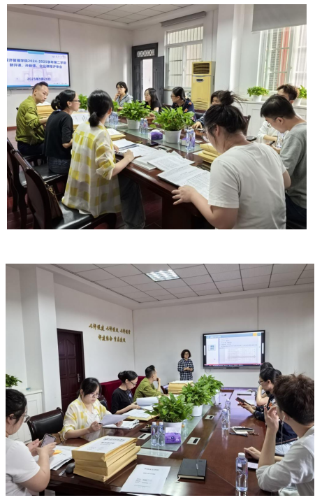 四位评审专家现场审阅新开课课程教学资料和开新课、企业课程材料(包括课程评估表、课程评估自评报告以及相关支撑材料),同时开新课老师常艳、刘春宇和企业老师范沐苗、邱锦程、夏彩君五位老师对本轮课程开展情况进行现场PPT汇报,内容包括课程定位与目标完成情况、课程教学内容与教学方法改革与创新、课程队伍建设情况、课程教学质量(课程考核情况、各类听课评教情况等)、课程存在问题及改进思路,评审组结合2024-2025学年第二学期新开课、开新课以及校企合作课程教师校级督导跟踪听课情况、学生评教在本单位排名情况、同行评价情况以及审阅支撑材料情况和课程负责人现场汇报情况,现场进行评审并给出评估意见。评审组认为,绝大多数课程设置合理、课程体系完善、教学内容较丰富,同时针对课程的师资队伍结构、教学设计合理性、课程存在问题及改进思路、信息化教学等方面提出了意见和建议。经评审,学院认定23门新开课质量评估自评结果为合格,同时2门开新课课程和3门企业课程评审结果为合格。