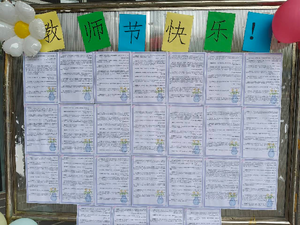 活动现场温馨而充满活力。一块醒目的展板上,贴满了同学们写给老师的真挚祝福,字里行间饱含感恩与敬意,引得老师们驻足品读,细细感受这份来自学生的真挚情感。